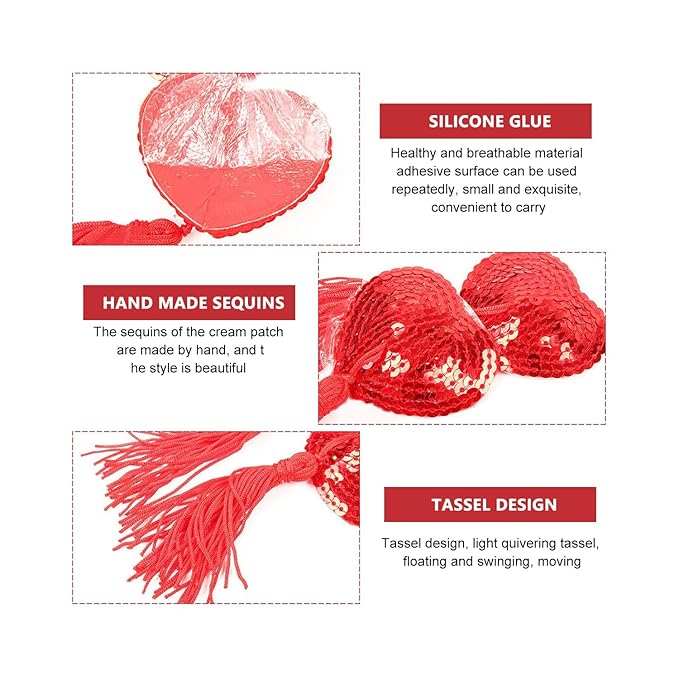- SEXY DESIGN: Cute heart shape is decorated with sequins and tassels, makes you more sexier and charming. They are perfect for your see-through blouses, swimwear, nightgown, sexy lingerie, low-cut top and etc.